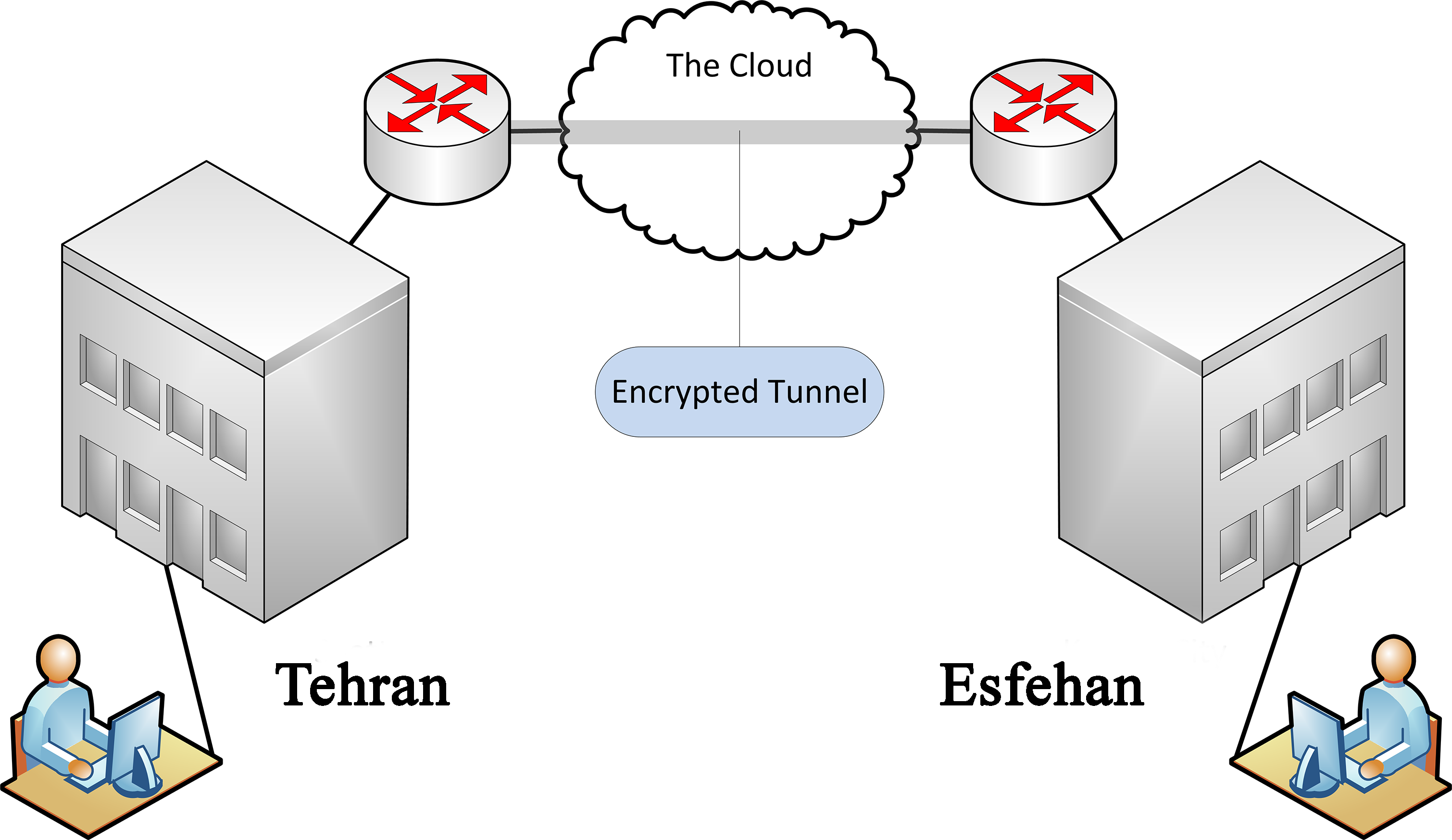 مثال خوبی میتوان برای توضیح VPN مطرح کرد. چند جزیره کوچک و مستقل از هم را در اقیانوسی در نظر بگیرید. در اینجا جزیرهها نقش مراکزی را ایفا میکنند که ما قصد اتصال آنها به یکدیگر را داریم. اقیانوس هم میتواند یک شبکه عمومی مانند اینترنت باشد.